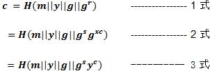 - $c = H( m||y||g||(g^s) (y^c) )$